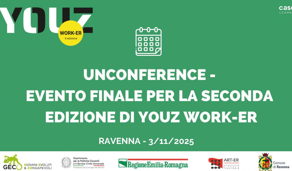 L’UNCONFERENCE segna la conclusione della seconda edizione di Youz Work-ER, percorso formativo promosso dalle Politiche Giovanili della Regione Emilia-Romagna, realizzato da CASCO Learning con il supporto di ART-ER e in collaborazione con il Comune di Ravenna, grazie al Fondo Nazionale Politiche Giovanili GECO 13.