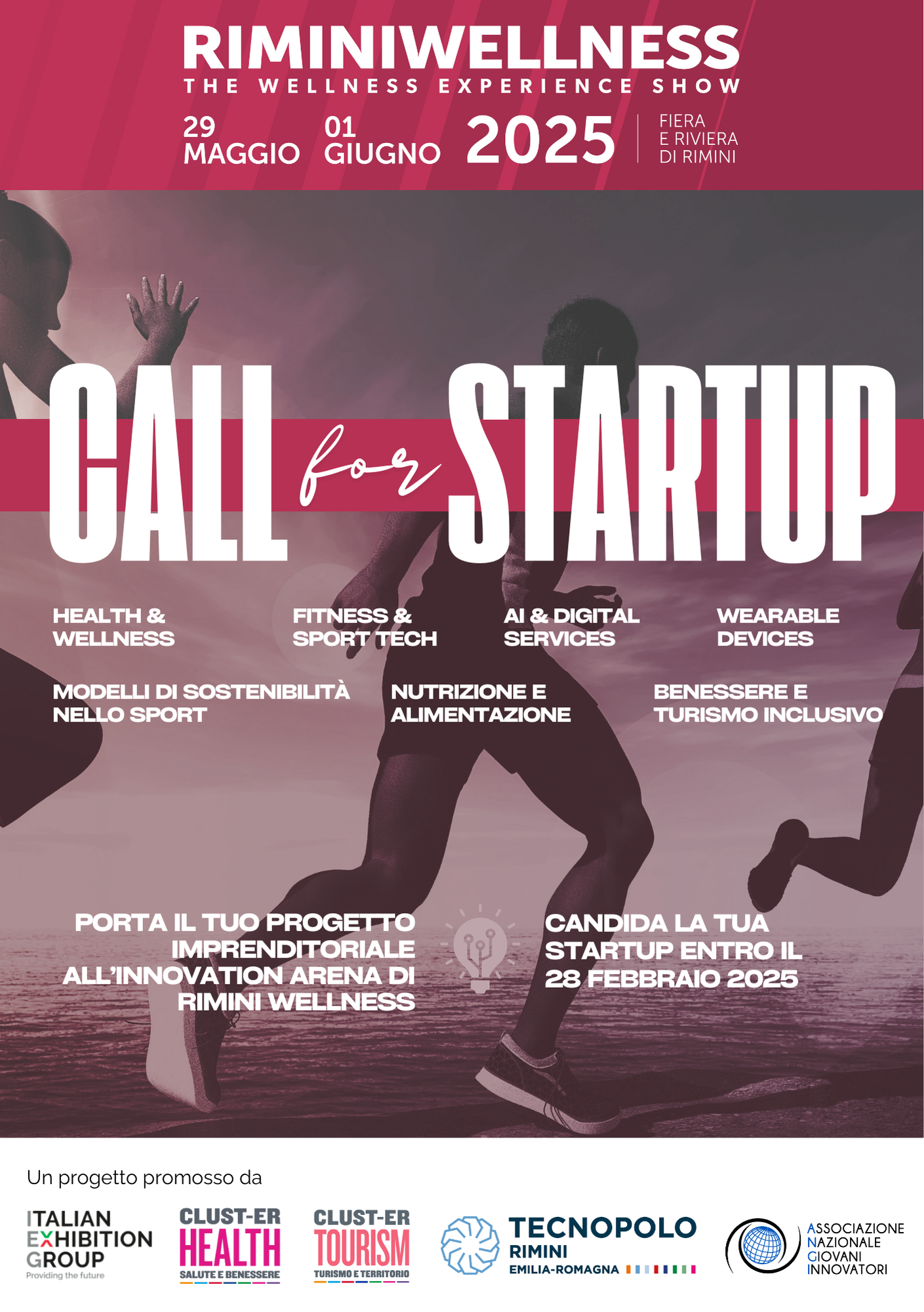 RiminiWellness nel 2025 ospiterà una nuova area: l’ Innovation Area, un progetto all'avanguardia che vuole individuare le soluzioni più innovative nel mondo dello sport, della salute e del benessere. L’Innovation Area di RiminiWellness si propone come un puntod’incontro per la tecnologia, il benessere e l'innovazione, dando spazio e possibilità di promozione a prodotti innovativi, dispositivi wearable, applicazioni digitali, servizi AI e nuovi modelli imprenditoriali nel campo della salute, nutrizione, sport, fitness e turismo del benessere. La call è rivolta a startup, scaleup, spinoff universitari e team di ricerca che operano in questi settori e che desiderano esporre, promuovere e far crescere le proprie idee di business.