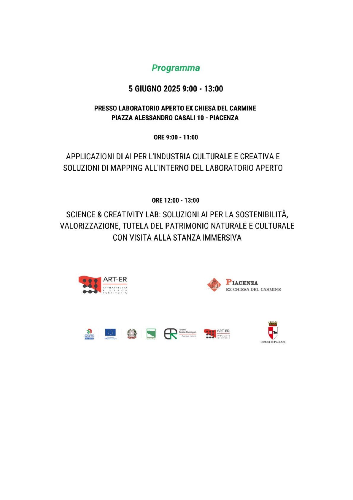 presso Laboratorio Aperto Piacenza – ex Chiesa del Carmine, Piazza Casali 10