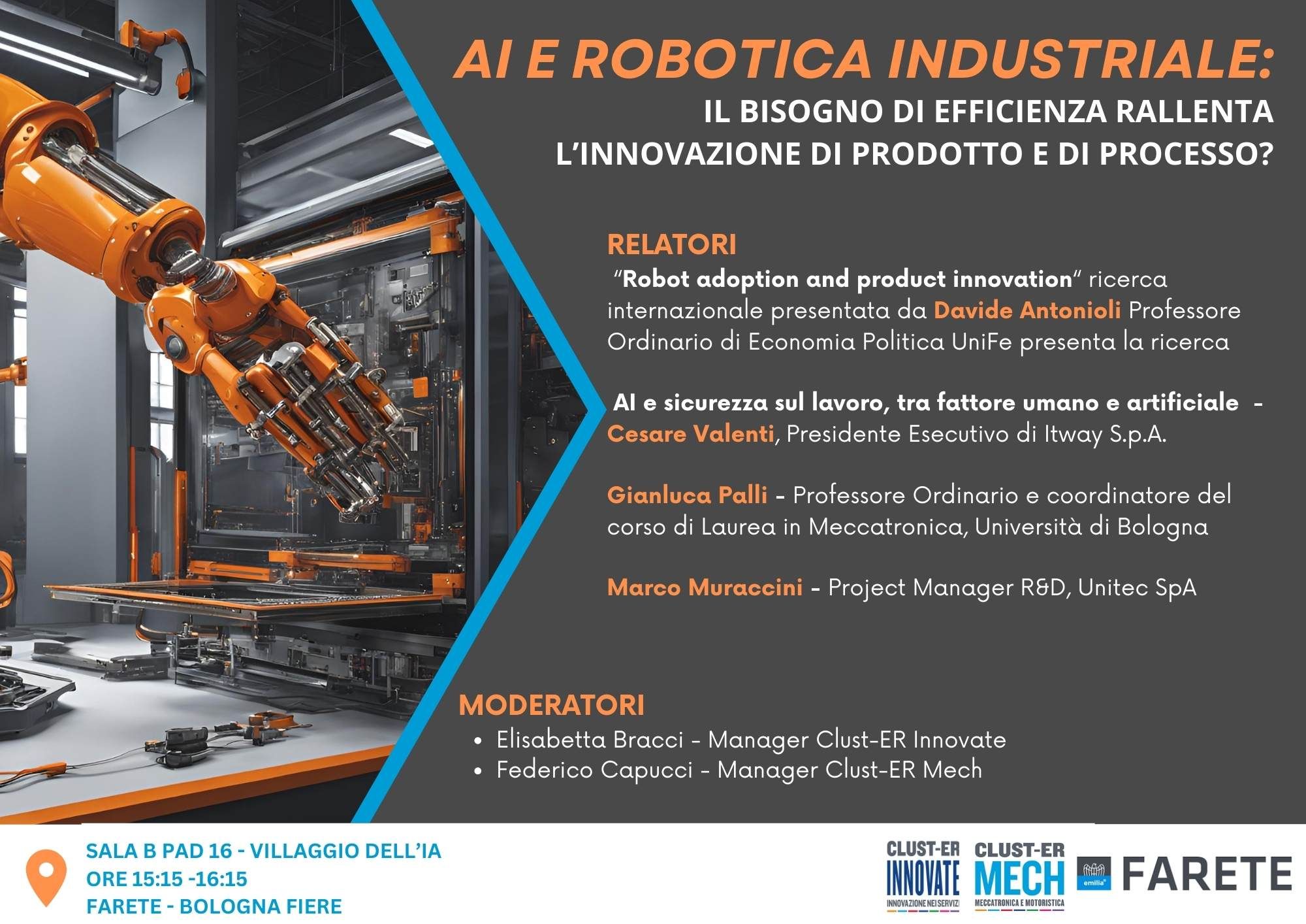 Il workshop, partendo da una ricerca recentemente pubblicata, ha l’obiettivo di approfondire la relazione che può intercorrere tra la crescente adozione di soluzioni di intelligenza artificiale e di robotica industriale e la capacità di integrare elementi di innovazione nel sistema aziendale.